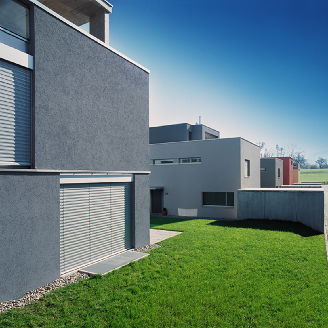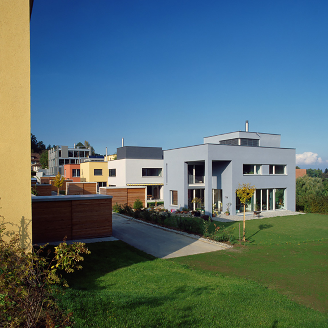 – Umsetzung eines hochisolierten Einsteinmauerwerks, eines abgestimmten Farbkonzepts und einer einheitlichen Außenraumgestaltung