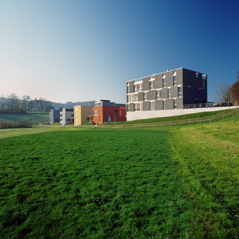 Das Hochbauamt der Stadt St. Gallen schrieb drei Lose eines größeren Grundstücks zur Bebauung aus. Gemeinsam mit vier weiteren Büros reichten wir einen Vorschlag ein, der den Zuschlag erhielt. Für die Realisierung wurde eigens die fünfarch GmbH gegründet, welche als Bauträger auftrat. Auf Basis des eingereichten Konzepts wurden den Mitgliedern Einzelgrundstücke zur Bearbeitung zugeteilt. Unser Büro übernahm zusätzlich die Gesamterschließung und die Koordination der Gesamtüberbauung.